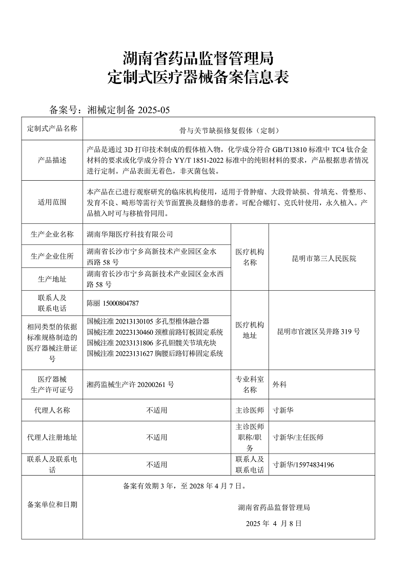 定制式利来囯际娱乐备案信息表(湘械定制备2025-05)